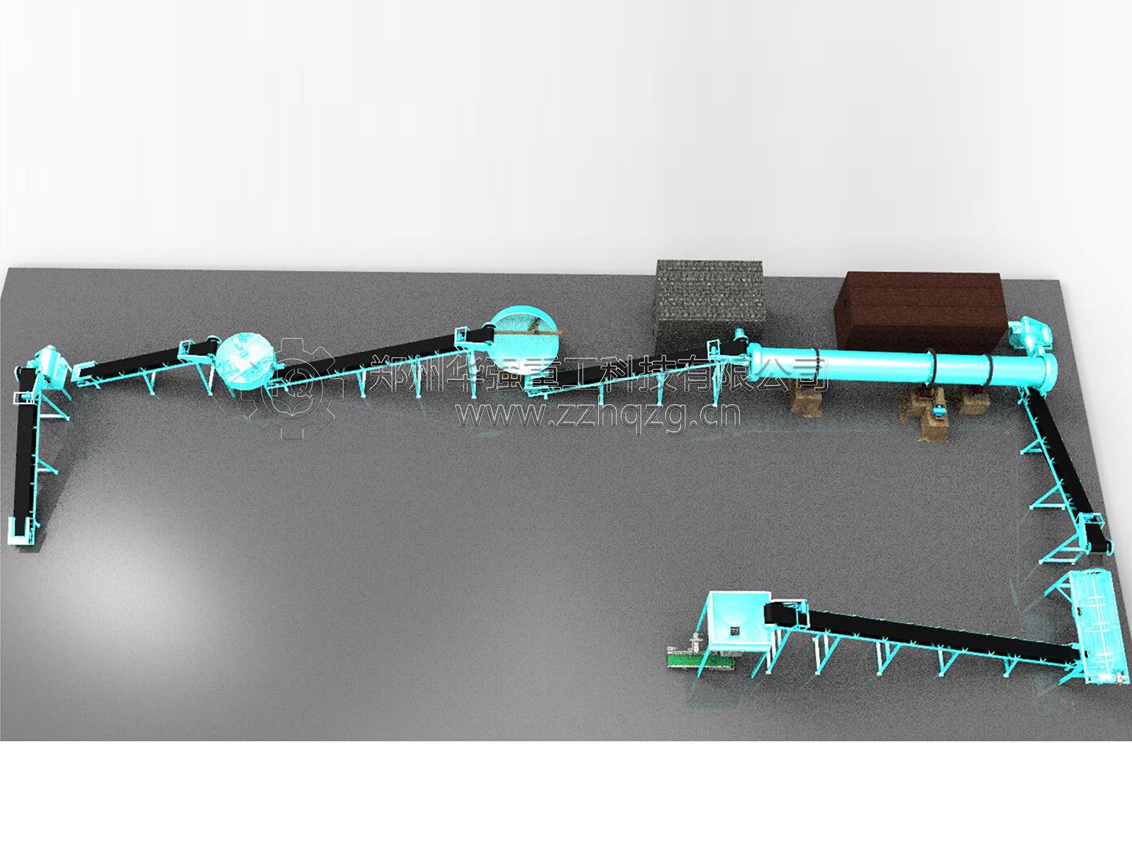 3. 輸送至有機(jī)肥烘干機(jī)中,與來自熱風(fēng)爐中的熱量進(jìn)行熱交換。